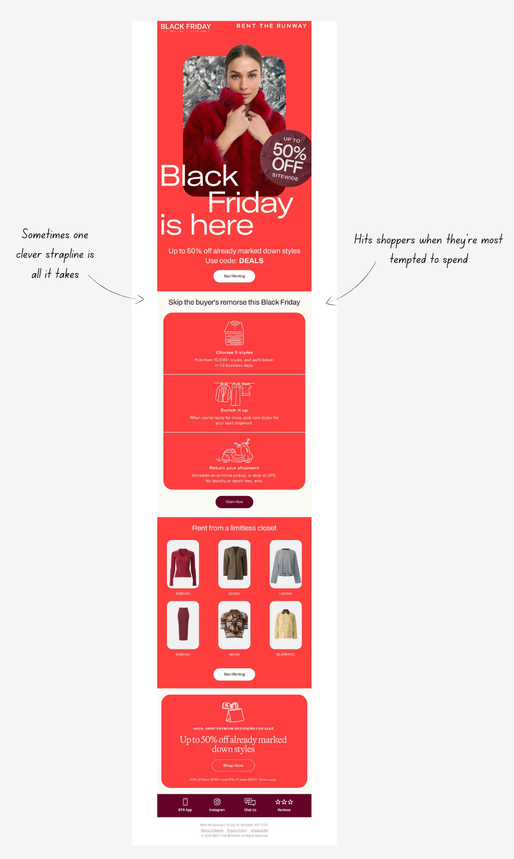 Rent the Runway took a smart spin on Black Friday, leaning into their USP of renting instead of buying, exactly at a time when we’re all tempted to overspend.